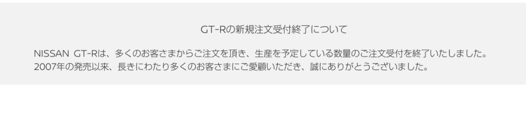 GT-Rの新規注文受付終了について