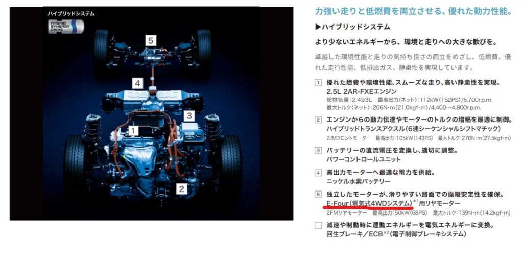 E-fourは何気にリアモーターが68馬力あるタイプだったりしたのですよね。重量がある分パワーのあるモーターが採用されていて、スリッピーな路面でのスタート時には有用だったと言います。