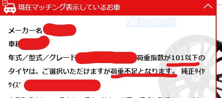 ロードインデックス不足になると、保安基準満たさないため車検通りませんし、整備工場も入庫拒否となる可能性もあります。