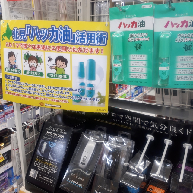 とあるカー用品店にて、北見ハッカ通商の商品をゴり押ししておりました。