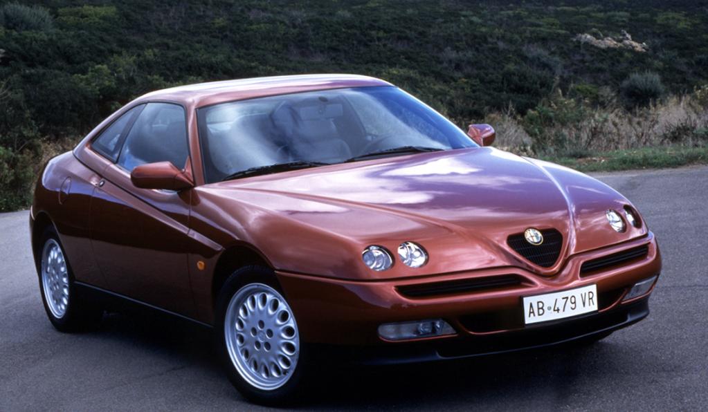 ピニンファリーナによる美しいスタイリングを備えたFFクーペ。大胆な斜めのキャラクターラインで個性的なデザインとしていました。マニュアルモデルの設定もあって、走りのバランスも高く評価されましたが、販売台数は伸びず、10年で生産終了。居住性を高めたアルファGTをモデル途中で追加、ブランドの象徴として併売してしばし残っていた一方、商業的には成功とは言えませんでした。