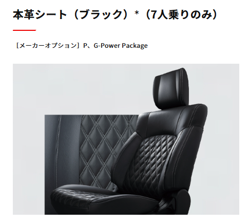 本革シートはPとGパワーパッケージの7人乗り仕様だけに設定され