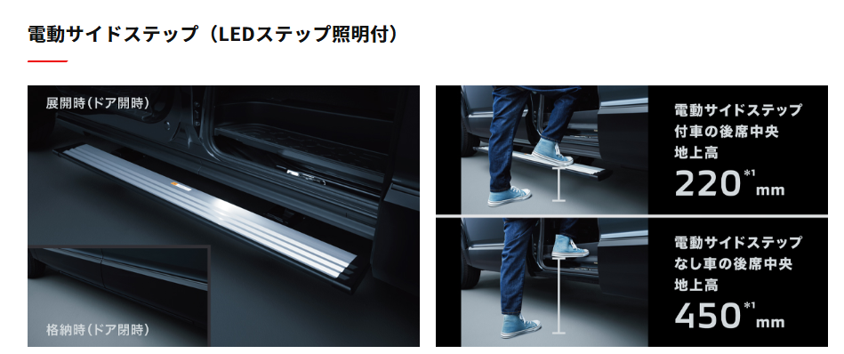 電動サイドステップはPとGパワーには標準ですが、Gには設定なし。これを電動サイドステップレスとすると-66,000円のマイナス・値引きとなります。