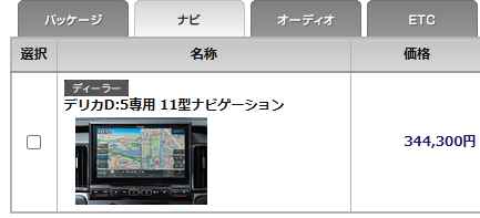 新型デリカD5のオプションの主なものと価格。