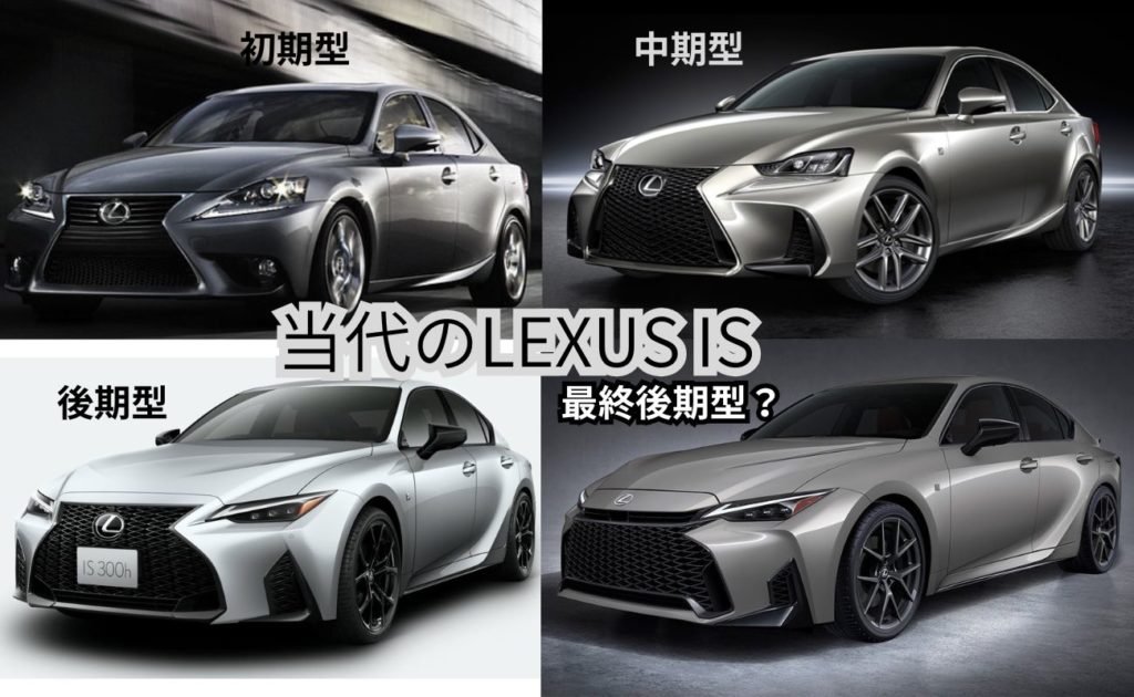 初期中期が似てて、後期最終型が似ているため、大枠でまとめてしまえば2パターンの前期後期で分けてもいいようにも思いますが、MY2026のISでは内装の大きな変化や運転支援の拡充もあって、見所も多いです。