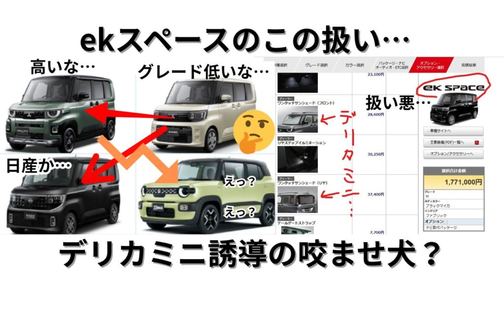 この価格でこの車を選ぶのであれば、恐らく他のクルマに流れる可能性がり、一応デリカミニへの誘導(最悪違うメーカーだとしても日産ルークスに誘導)がしたいのだろうと思われます。