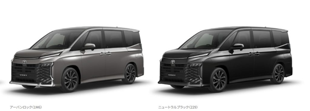 ノア・ヴォクシーともに、ボディカラーのラインナップが変更され、ニュートラルブラック<229>・アーバンロック<1M6>の設定が目新しいところです。