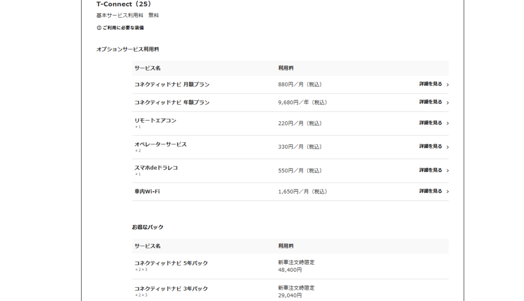 | コネクティッドナビ 年額プラン | 9,680円/年(税込) |