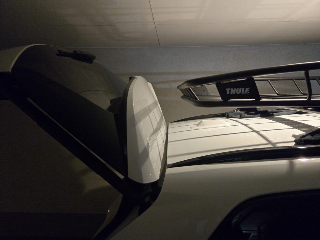それなら可能な限り後ろ寄りにしたら?となりますが、そうすると、リアハッチ・テールゲートが干渉するケースも出てくるので、取り付け場所には注意です。