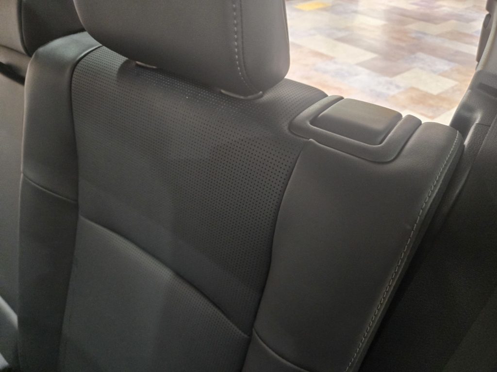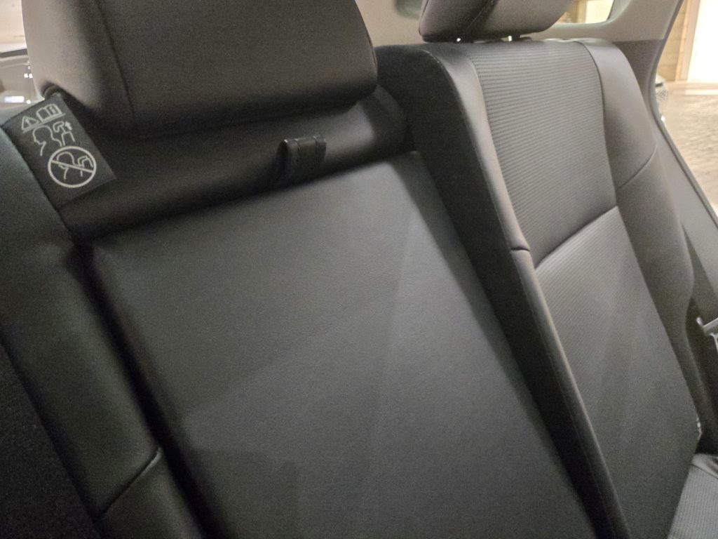 リアシートもフロントシートと同じく、合皮のレザーにセンター部分にパンチングメッシュを施したものですが、シートベンチレーション搭載ではありません。
