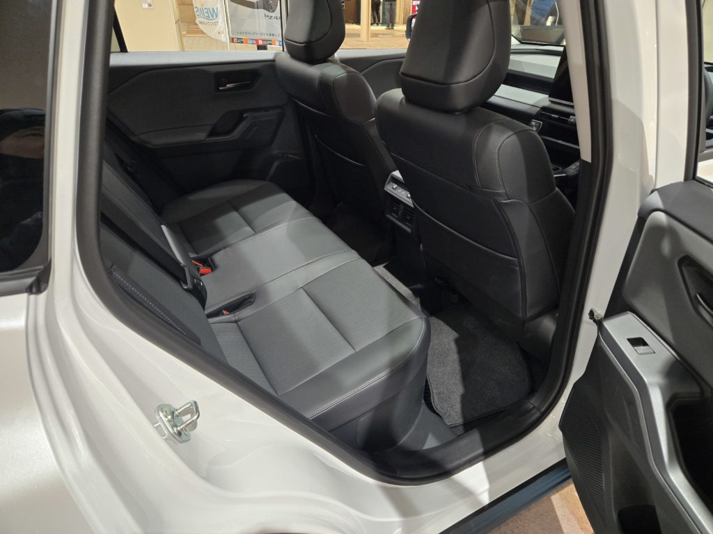 リアシートは十分広く、ハリアーやカローラクロスよりかはだいぶ広めです。