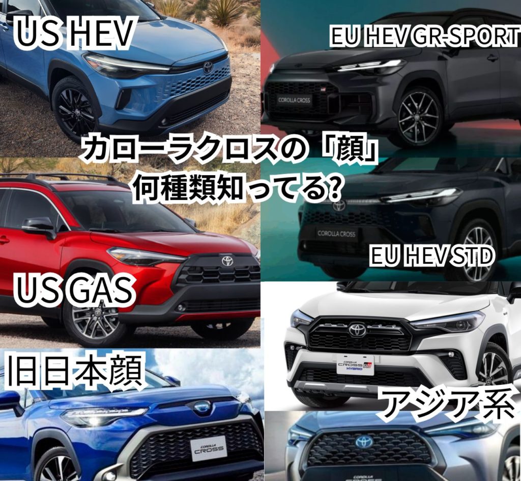 だいたい、カローラクロスだけで7種類くらいあるかしらね。日本でマイナーチェンジして更に顔のパターンが増える可能性もあります。ここまで多様な顔を用意していて、さらには次期モデルへのフルモデルチェンジは2~3年程度で予定されているってのも驚きです。