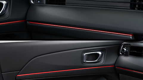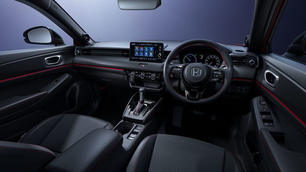 ヴェゼルRSは専用装備多く、シビックRSと近い配色・赤系の挿し色を効果的に入れることでスポーティ感を演出しています。