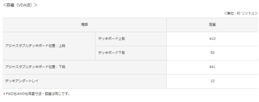 トヨタのbZ4Xの方は、デッキボードの設定で441Lが最大ですかね。アンダートレイ足せば451Lになるかしら。