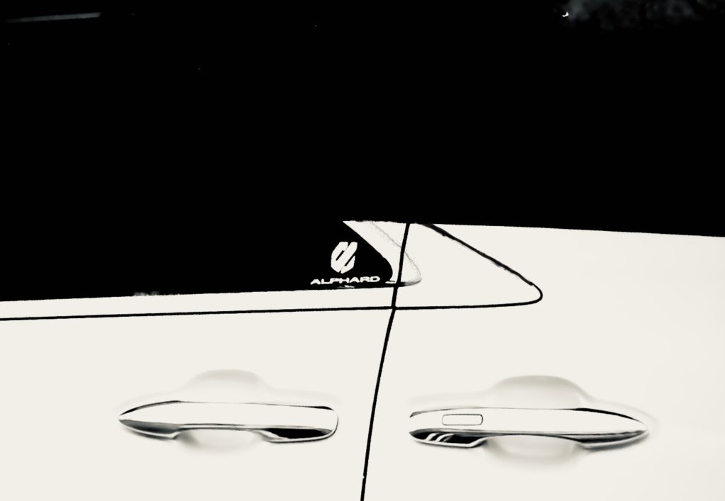 ちょっと残念ですが、Bピラーに燦然と輝くアルファードマークで満足しておきましょう。