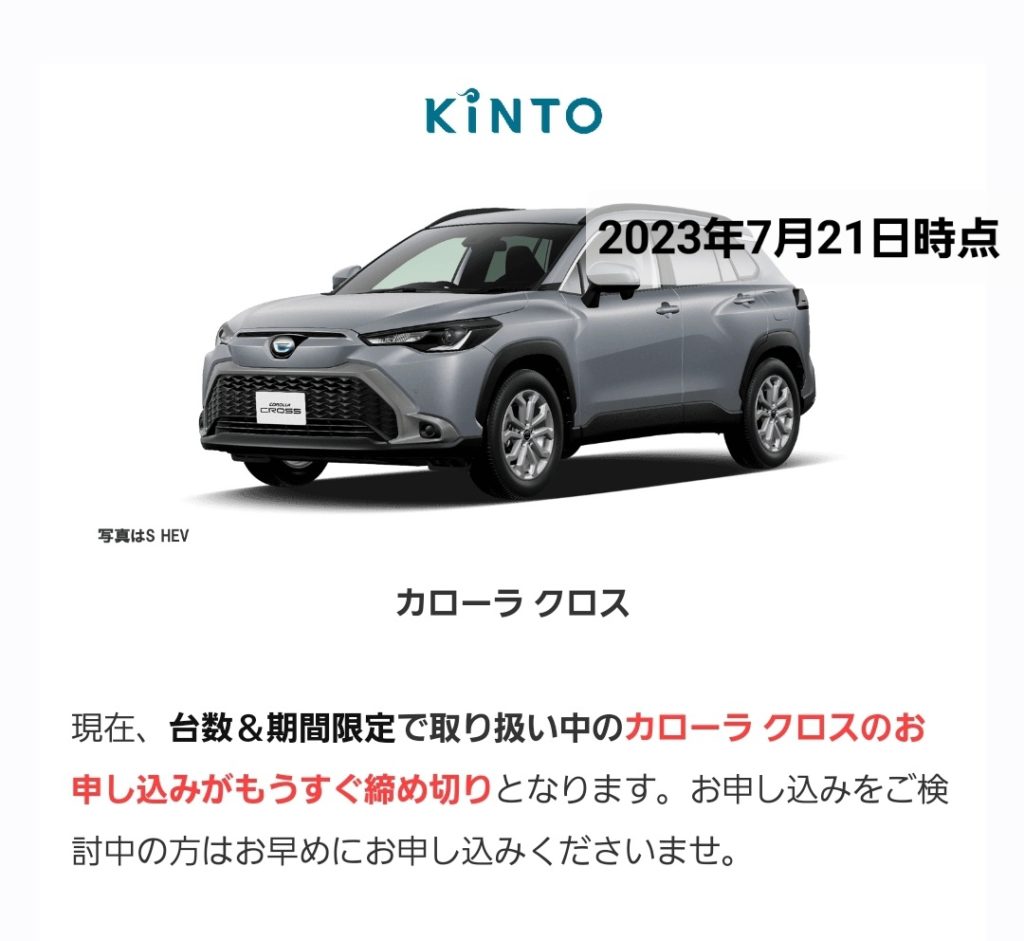 月末か週末か…カローラクロス受注停止間近納期遅れの中MC前逆に狙い目はkinto?