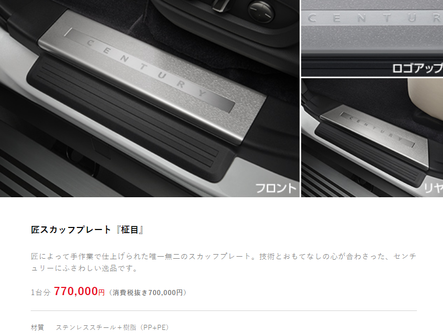 このサイドシル用スカッフプレートで77万円、corollacrossならエントリーグレードから最上位グレードを選べるくらいにステップアップできるし、別の上位車種も射程圏内に入る、77万円のプレート…