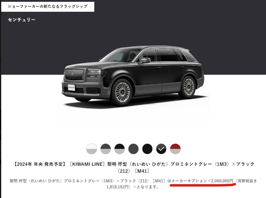 フラッグシップVIP SUVとなるセンチュリー、そのオプションなど高過ぎて話題に。