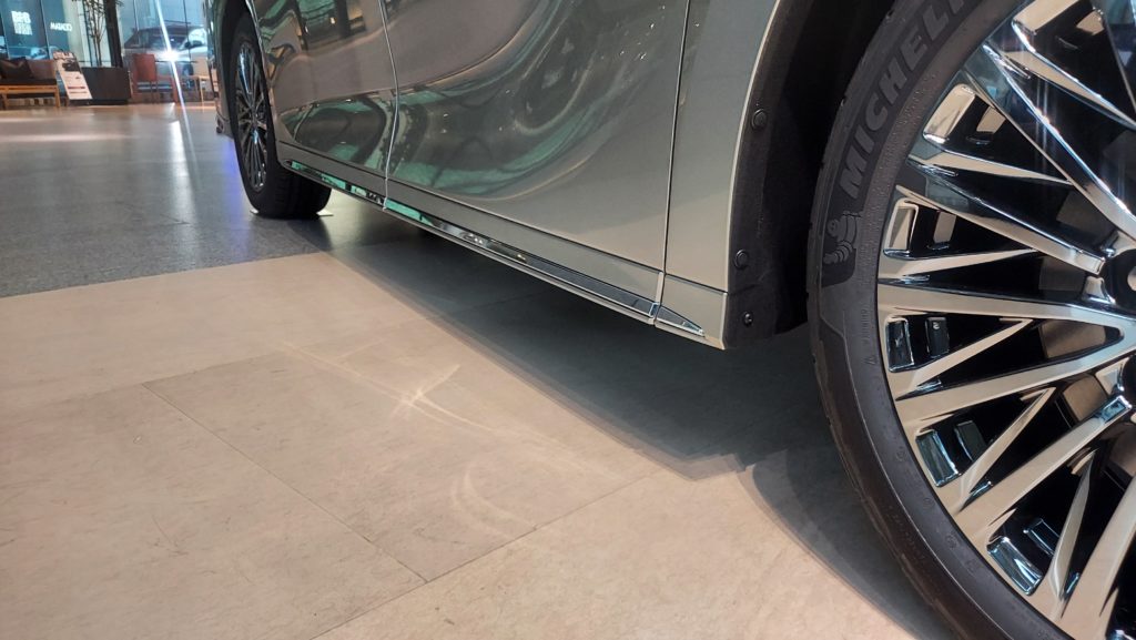 サイドステップのロアにはメッキの装飾があって、高級感をプラス。