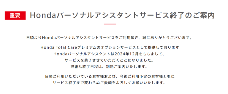 ホンダまたサ終…Honda パーソナルアシスタントも2024年12月でサービス終了、アプリセンターに続き迷走は続く