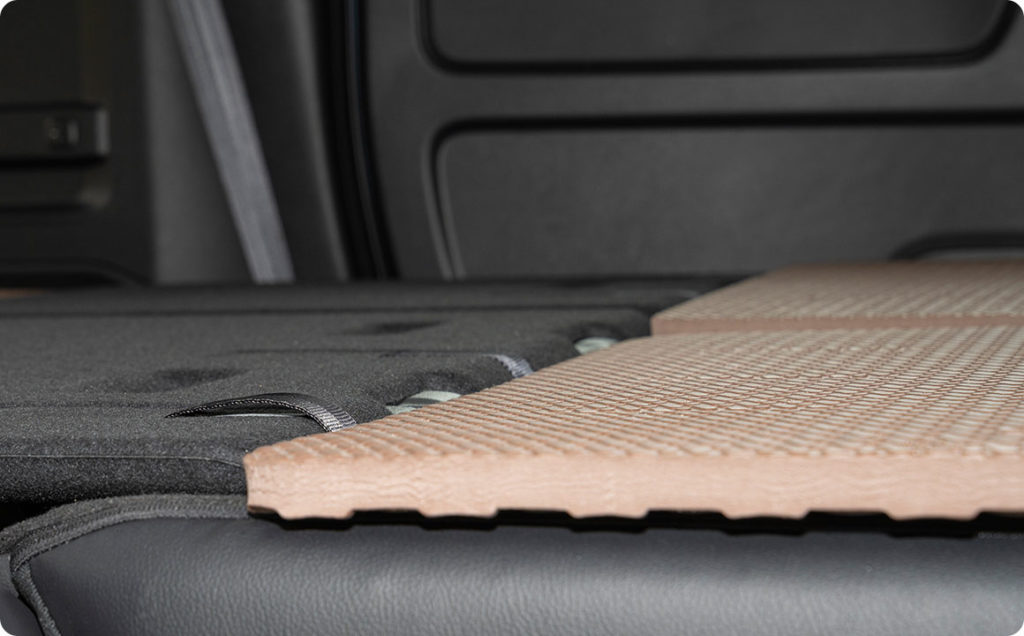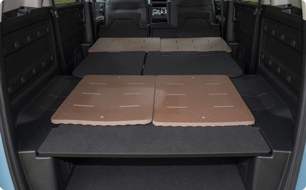 メーカー公式によるフルフラット段差解消のビジュアル、DIY感あって最高ですね。ディーラーオプションで厚さ2.5センチのバスマットってのは用意してくれたりはしませんwww