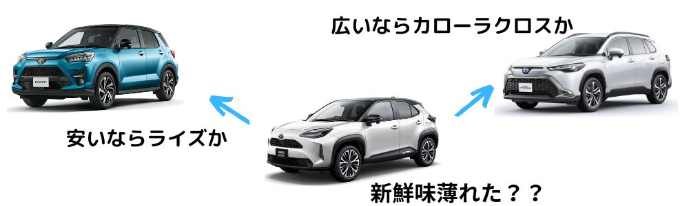 トヨタの共食い戦略的にカローラクロスを推しているのもあるし、価格の安さでライズも評価されています。