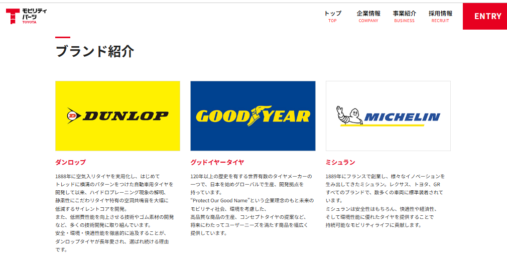 トヨタモビリティパーツなどで取り扱いの有るタイヤメーカー