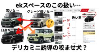 デリカミニが高過ぎて買えない人へ? 新型デリカミニが高過ぎる…290.7万円の最高グレードの価格に絶望した方、同じ三菱の兄弟車であるekスペースもあるよ… ※当サイト内アフィリエイト広告等が表示されます 三菱ekスペース … 続きを読む 咬ませ犬…三菱新型ekスペースはデリカミニとルークスの影の存在に