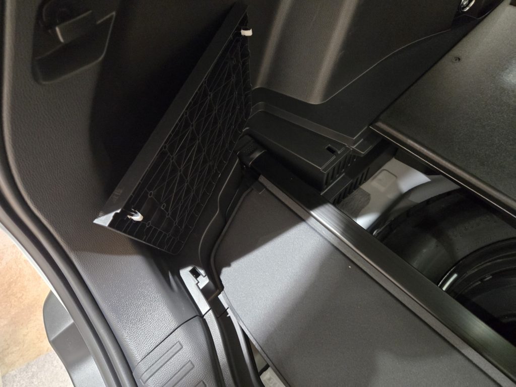 ラゲッジ右側の樹脂パネルを外して荷室下にアクセス