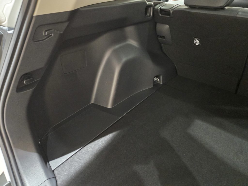 荷室スペースの特徴としては、布貼りの部分は少なく、樹脂むき出し部分の面積が大きいということ。