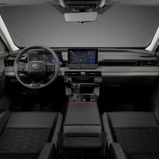 シートは防水防汚加工したファブリックと思われます。E-fourのみですので悪路走破性で不安が残る部分もありそうなんですが、恐らくドライブモードや走行モードでExtraスノーモードなどの泥濘脱出特化の制御モードを追加してユーザーの不安解消に努めるものと思われます。