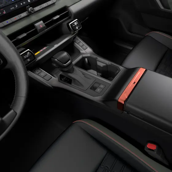 センターコンソール後部にはUSBタイプC給電ソケットがあり、そしてリアシートヒーラーのスイッチも見えるなど、上位グレードであればかなり充実した装備となりそうな感じです。