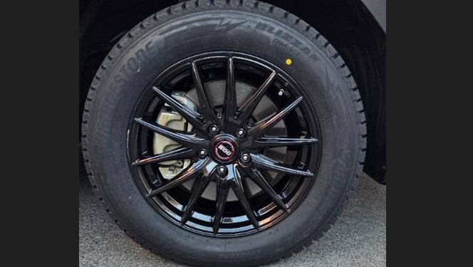 BADX(バドックス)のアルミホイールD.O.S VC-1とブリヂストンのスタッドレスタイヤブリザック DM-V3でのクリアランスが取れています。