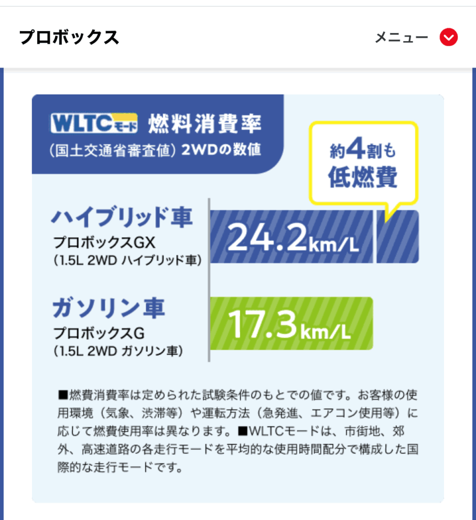 相当意気込んでプレゼンスしたかったところでしょうが、プロボックス公式ページ上の特設ページではガソリンとハイブリッド間違えていたりもしました・・・