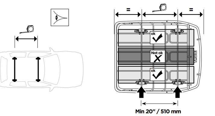 ✔ ルーフバー間隔は70〜80cm取れるか(51㎝以上であればいいけど、一応)