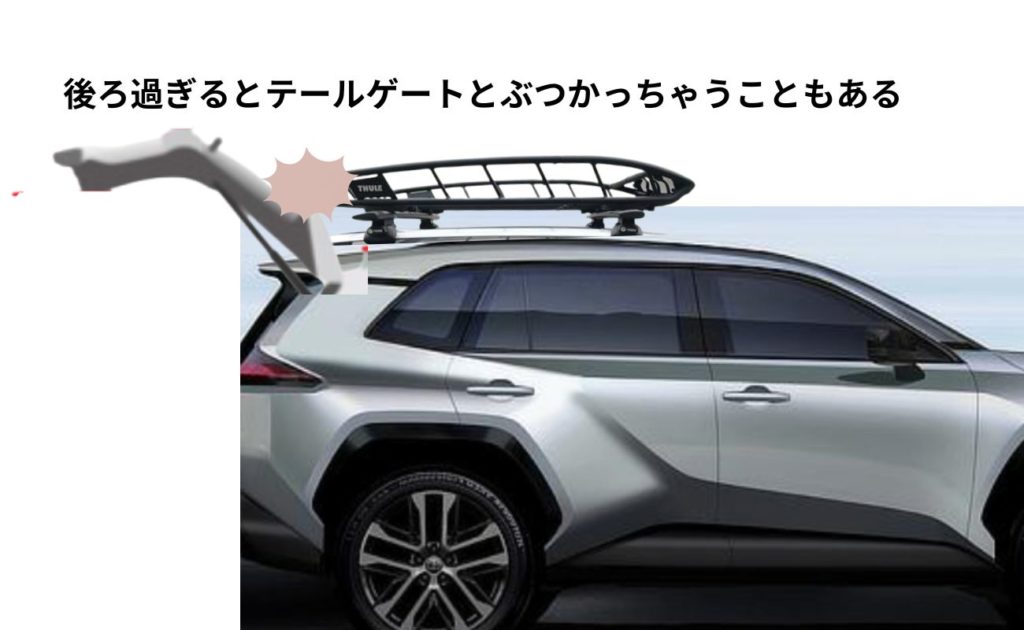取り付けにあたっての調整によっては、リアハッチ開閉でラックと干渉しちゃったり、前に突き出しが大きくなって風切音大きくなるなどもあるかも。