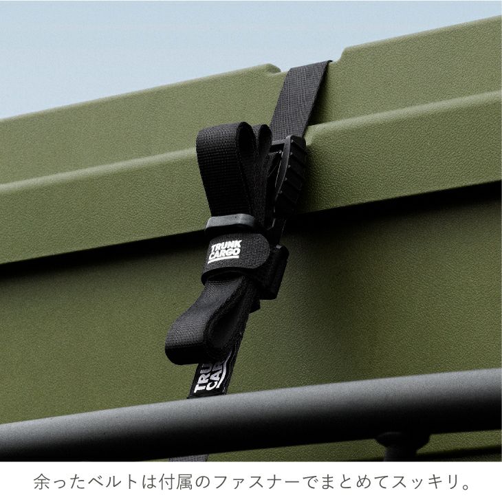 トランクカーゴの車載に特化した固定ベルトで、効率の良い固定と荷解きができるよう長さも使い勝手もかなり研究されています。