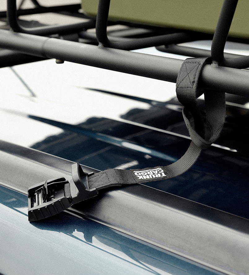 ルーフラック・ルーフキャリアの荷物の固定に、Tie Down Belt(タイダウンベルト)。