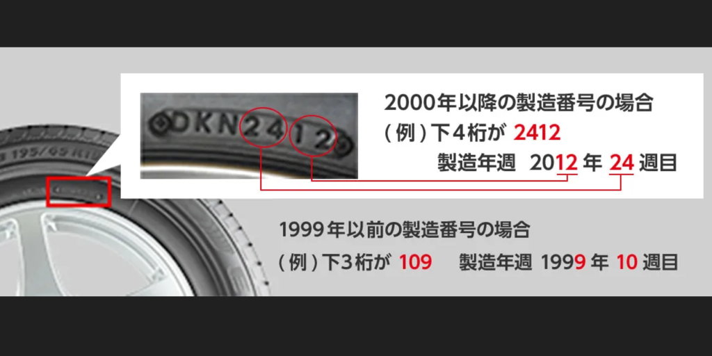 タイヤサイドウォールの製造番号をチェックするのも大事です。